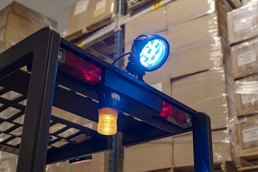 Đèn này cũng là một trong các phần tùy chọn của thiết bị có khả năng giúp tăng cường an toàn trong một số môi trường. Khi các điểm mù giao nhau bên trong kho hàng, đèn an toàn cho người đi bộ màu xanh có thể giúp cảnh báo cho người điều khiển và người đi bộ khác trong cơ sở là đang có một xe nâng đang đến gần.