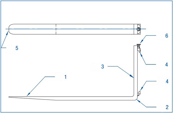 Càng xe nâng gồm 5 bộ phận chính như sau: